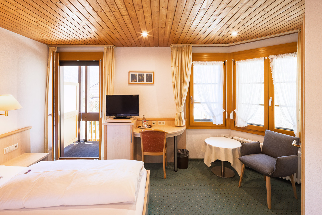 Alle Zimmer sind mit Dusche/ WC, Föhn, Sat-TV, Safe, Radio und Telefon ausgestattet. Einige Zimmer haben einen gemütlichen Balkon.Unsere Preise gelten pro Person und Nacht, inklusive reichhaltigem Vital-Frühstücksbüffet.