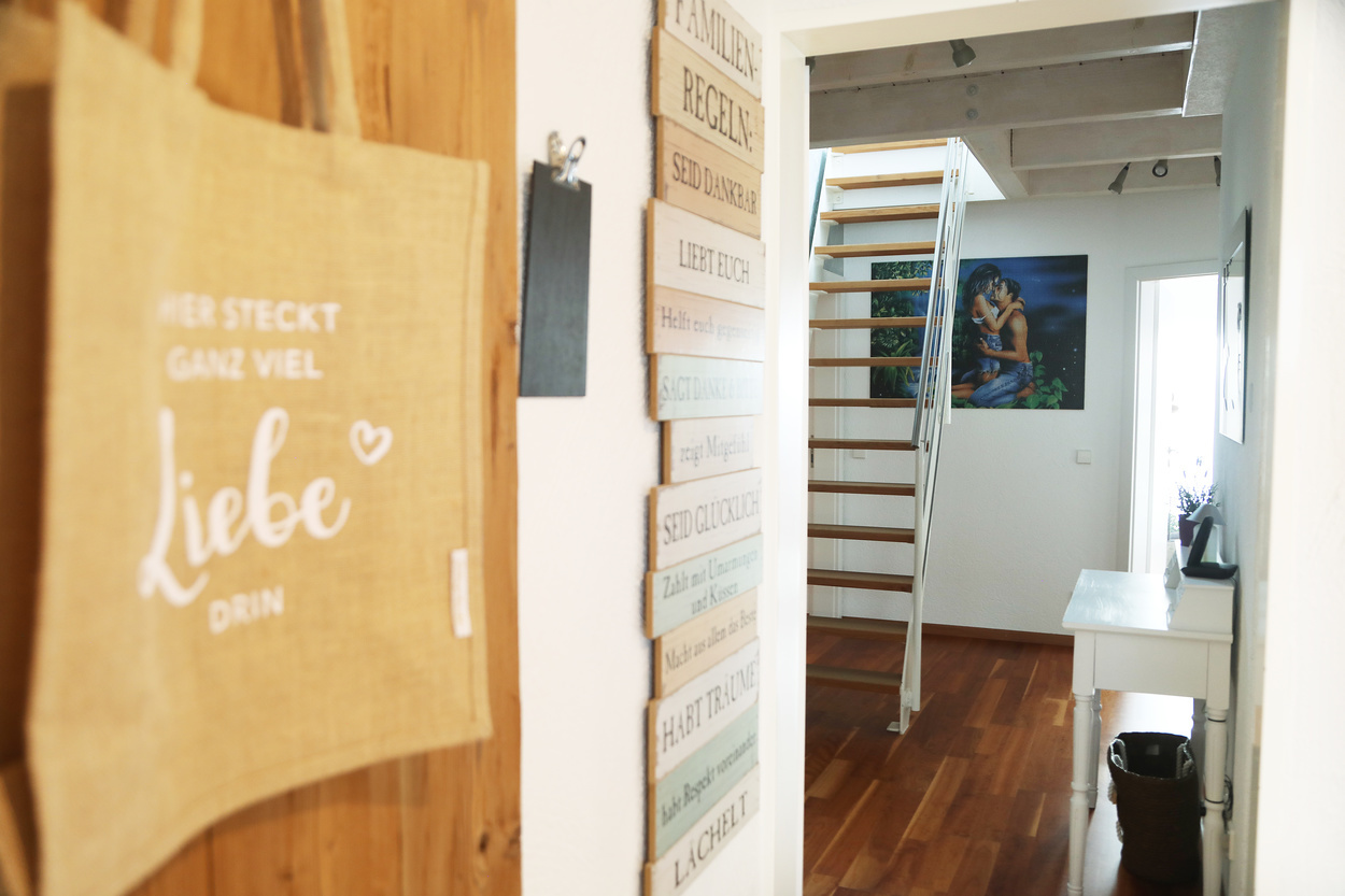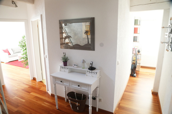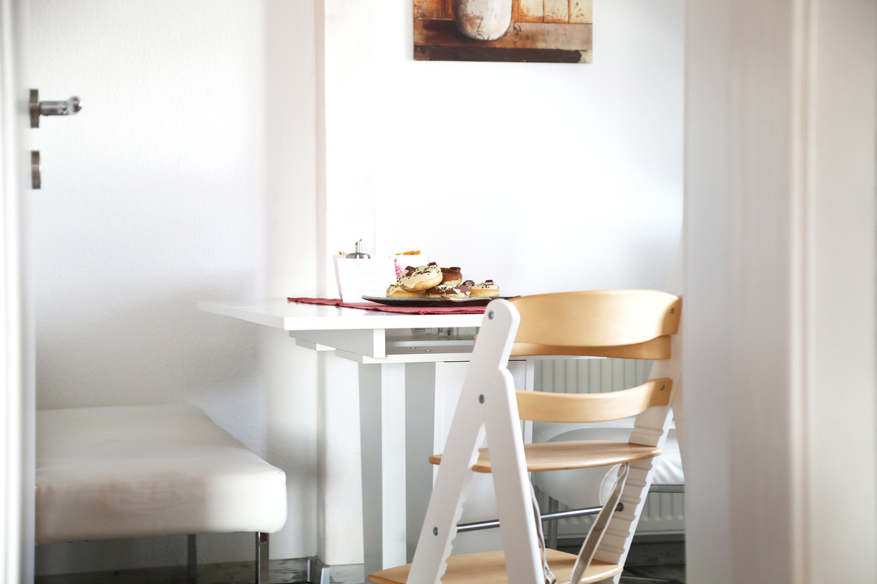 Die Ferienwohnung im 1. Obergeschoss ist modern und hell eingerichtet und bietet genug Raum für Familien mit Kindern. Die Ausstattung ist kinderfreundlich und verfügt über Beistellbett sowie Kinderhochstuhl etc.