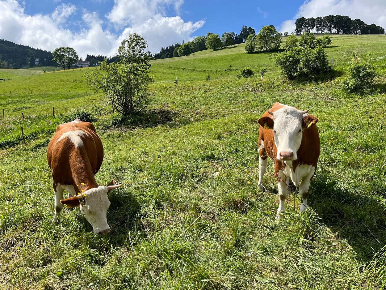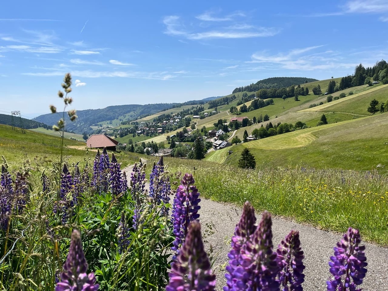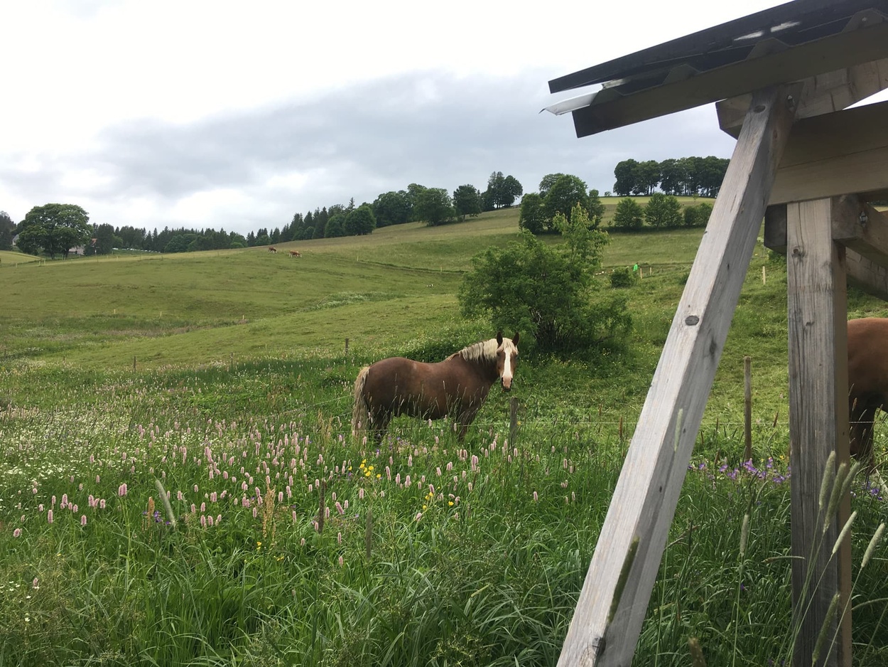 Ab auf den Berg! Naturnahe Unterkunft für Urlaub, Auszeit, Freizeit im sonnigen Hochtal im Südschwarzwald. Freistehend, in ruhiger Lage, auf 1.020 m Höhe mit Weitblick und viel Platz direkt am Bach.zur Unterkunft