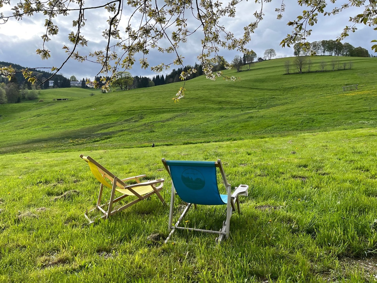 Direkt vor der Haustür: Natur pur, Wanderwege, Bike-Touren, Zugang zu Skilift, Loipe, Rodelhang ... und ein Platz im Liegestuhl.