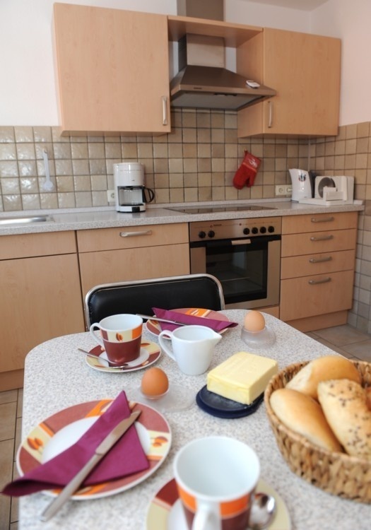 - Küche mit Spülmaschine, Ceran - Kochfeld, Backofen, Kühl -, Gefrierschrank, Mikrowelle, usw.
