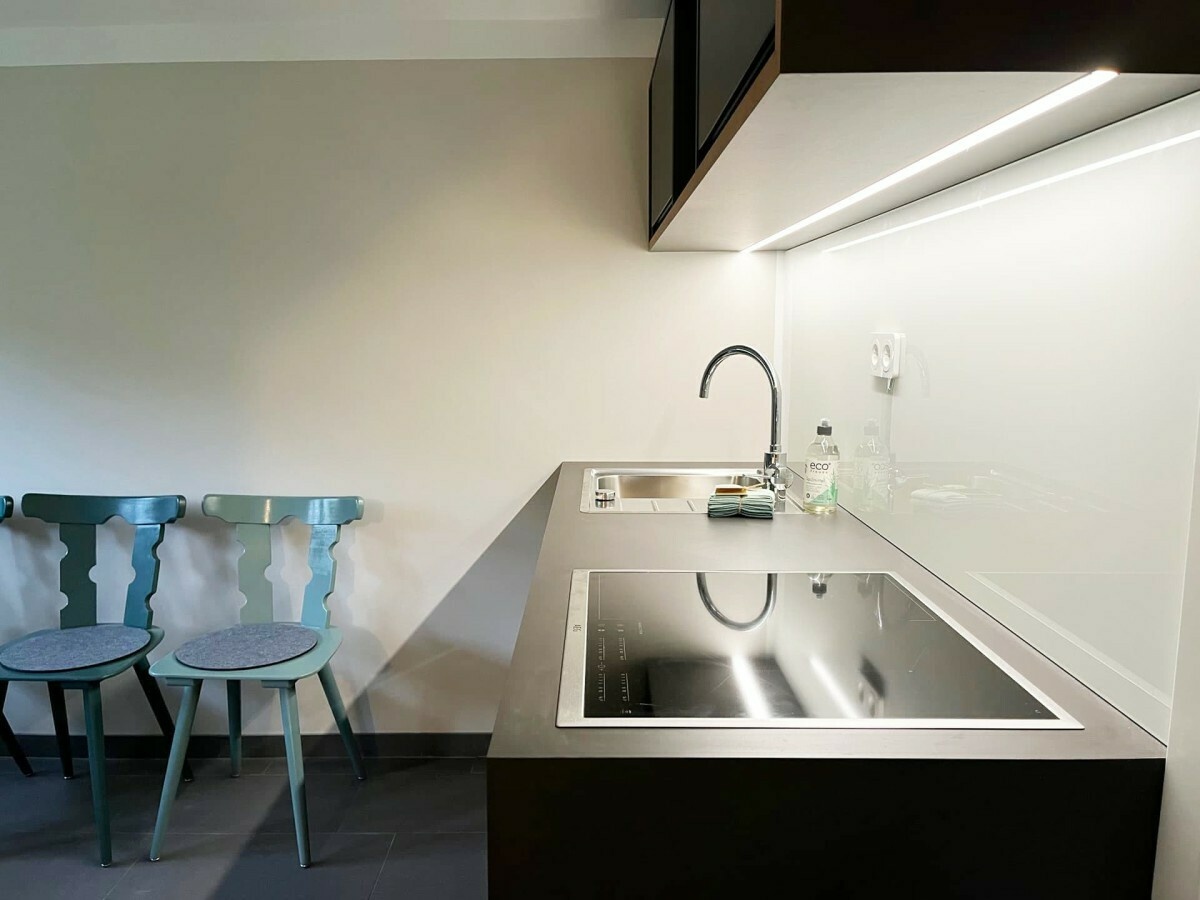 • Küche/Essbereich: Esstisch mit 4 Stühlen, Kinderhochstuhl (Tripp Trapp mit Baby-Set) auf Wunsch. Komplett eingerichtete und ausgestattete Küche mit Induktionsherd, Backofen, Mikrowelle, Geschirrspüler, Kühlschrank. Toaster, Wasserkocher, Kaffeemaschine (Siebträger). Geschirr, Besteck, Gläser /Weingläser, umfangreiche Küchenutensilien. Erstausstattung Kaffee und Tee, Gewürze, Reinigungsmittel.
